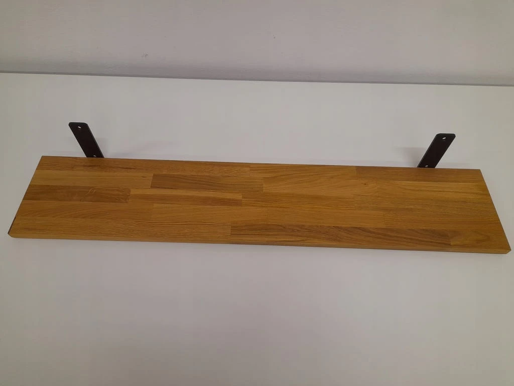 Półka dębowa 80×20×1,8 cm – naturalna elegancja i solidność. W zestawie są uchwyty, które można zamontować w górę lub w dół.