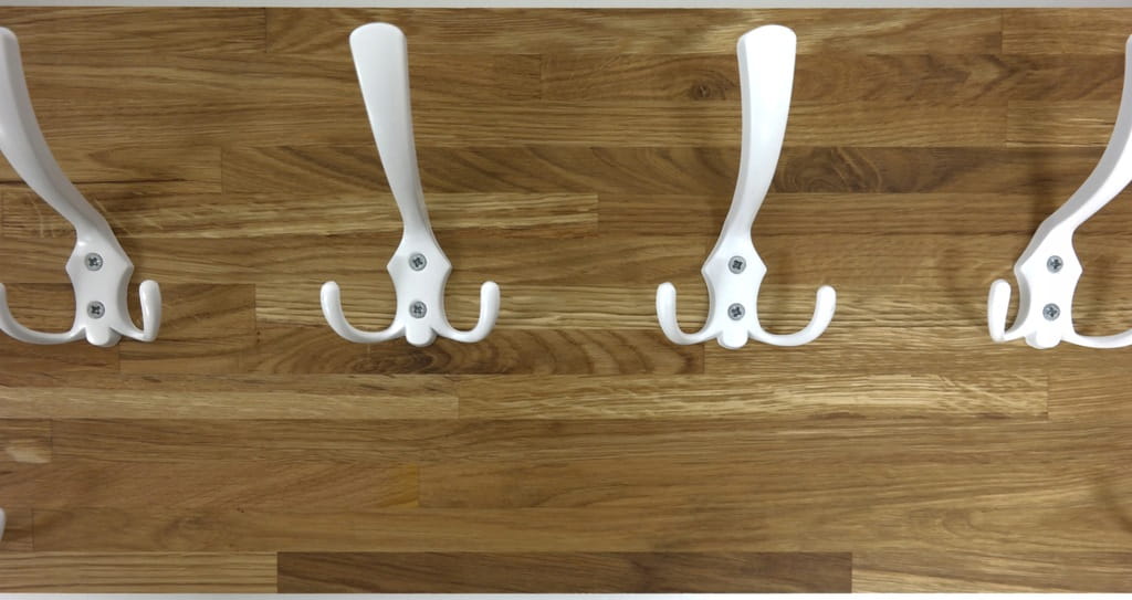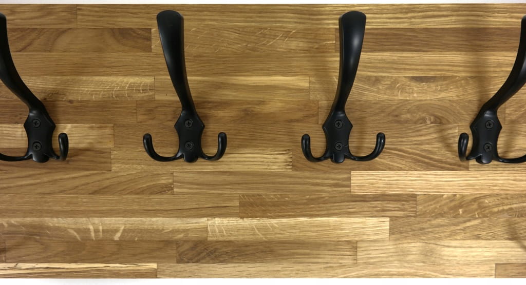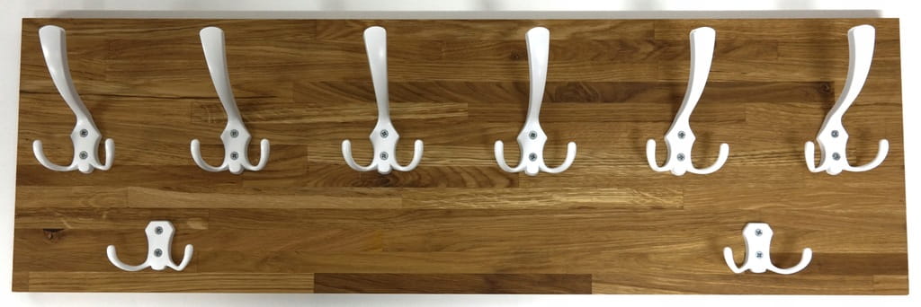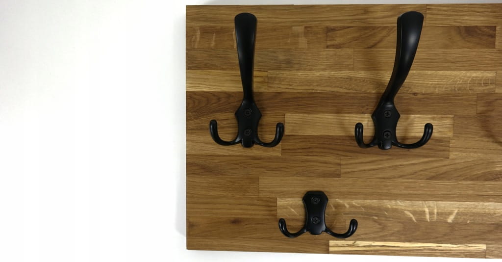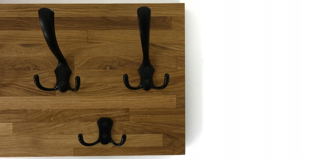 Solidny i estetyczny wieszak ścienny wykonany z naturalnego drewna dębowego (26mm grubości), który doskonale sprawdzi się w przedpokoju, garderobie lub korytarzu. Prosta forma, ciepły kolor drewna i metalowe haczyki tworzą ponadczasowe połączenie, pasujące zarówno do wnętrz nowoczesnych, loftowych, jak i klasycznych.