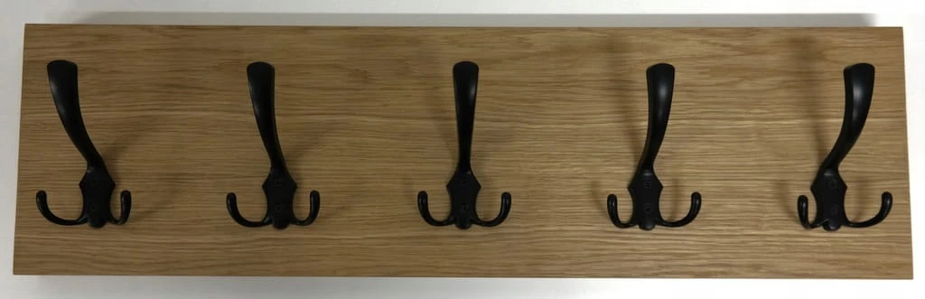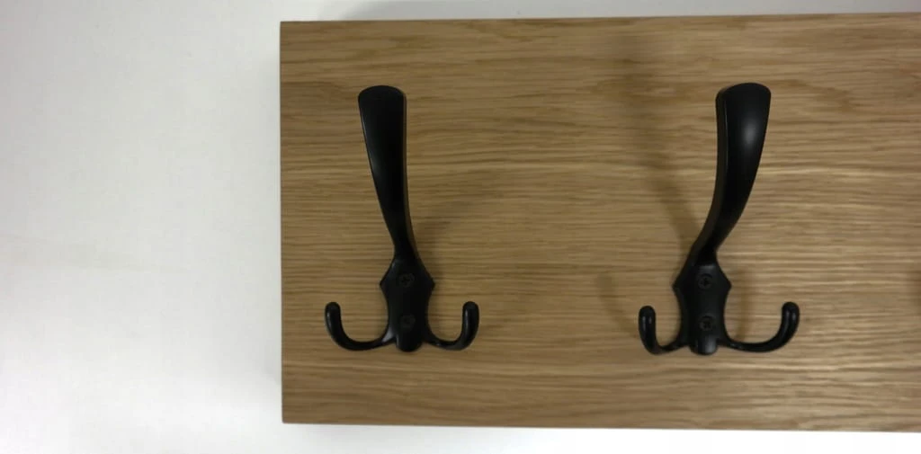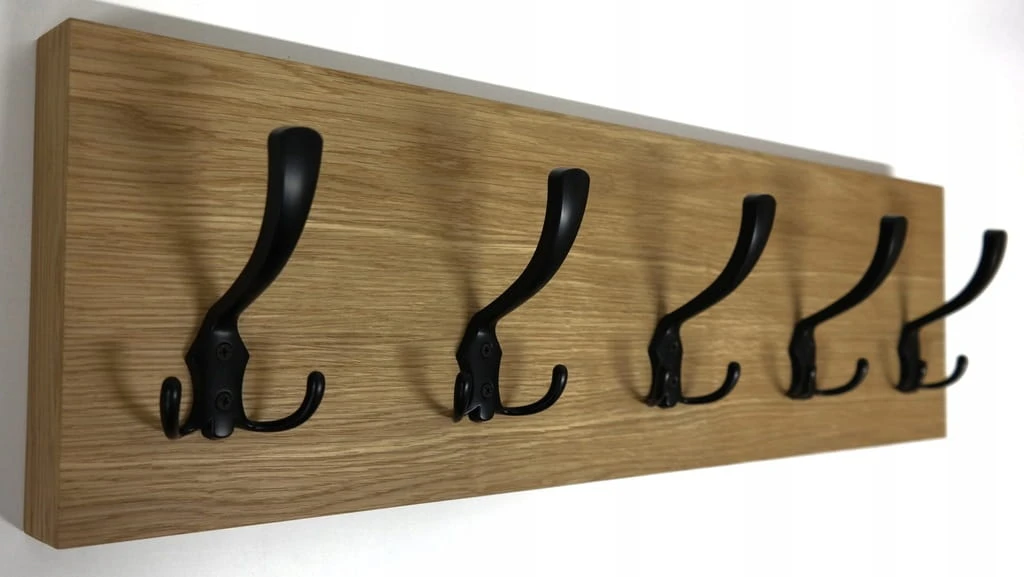 Stylowy i solidny wieszak ścienny wykonany z grubej płyty fornirowanej naturalnym fornirem dębowym. To produkt klasy premium, który łączy funkcjonalność z estetyką – idealny do przedpokoju, holu, garderoby lub biura.